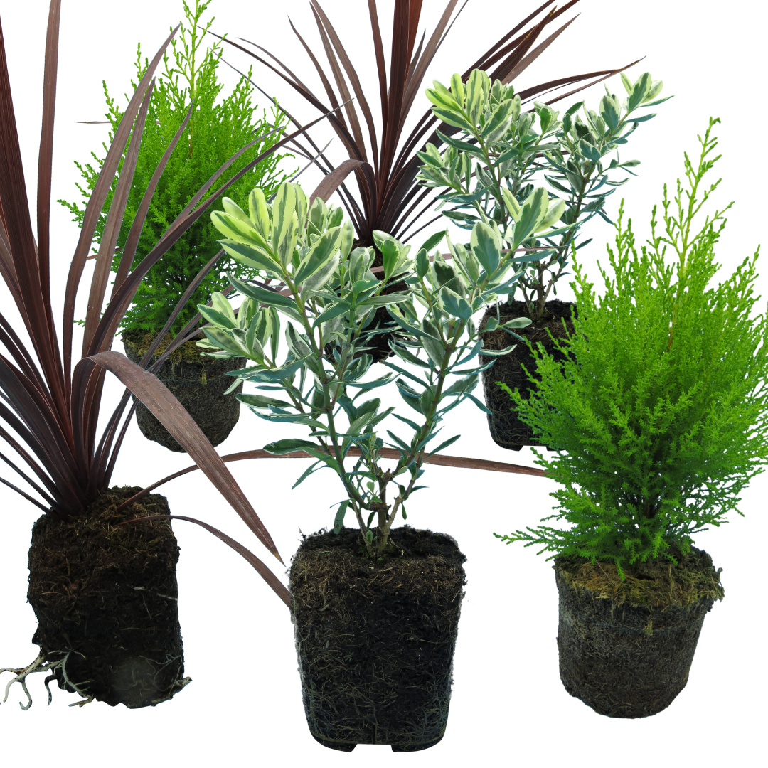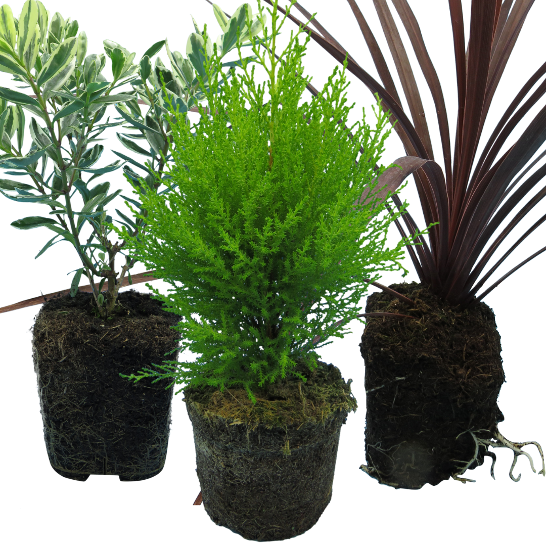 Transform your containers, planters, & pots with our Container Middles Collection—a curated trio of striking evergreen plants chosen for structure, shape & lasting garden appeal. With the upright golden-green glow of Cupressus Wilma, the deep bronze-red foliage of Cordyline Red Star, & the bee-friendly blooms of Hebe Variegata, this mix offers instant height, texture & seasonal colour. Perfect as focal points in patio pots, baskets, or larger mixed arrangements.