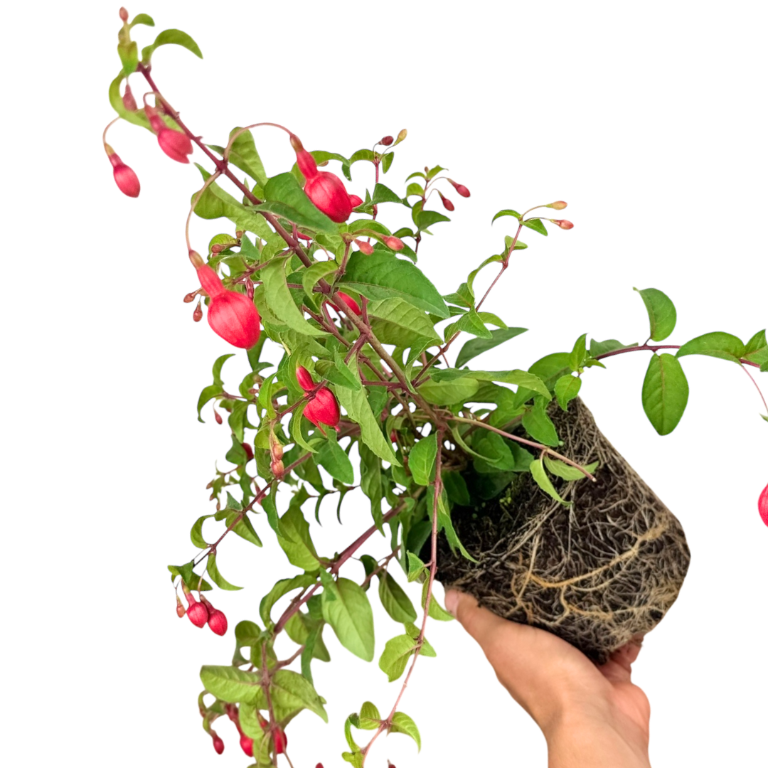 Graceful, long-flowering, and full of movement, Fuchsia ‘Snowcap’ is a hardy favorite that brings elegant colour and soft structure to your outdoor spaces. This variety is celebrated for its stunning bicolor blooms, featuring vivid scarlet-red sepals that contrast beautifully with a crisp, snow-white ruffled centre. These elegant tubular flowers hang delicately from fine stems, creating constant movement and a lush, tiered effect from early summer right through until the first frosts of autumn.