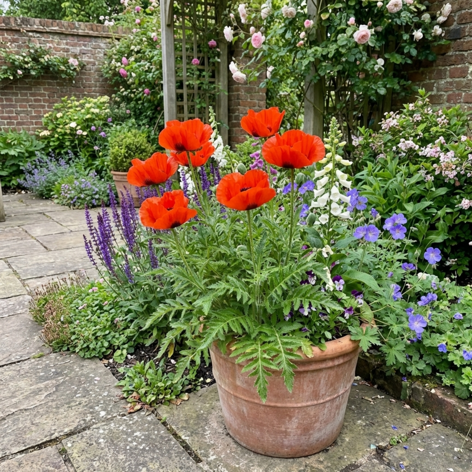 • Fiery Scarlet Blooms: Large, crepe-paper-like flowers in a stunning orange-scarlet that commands attention.