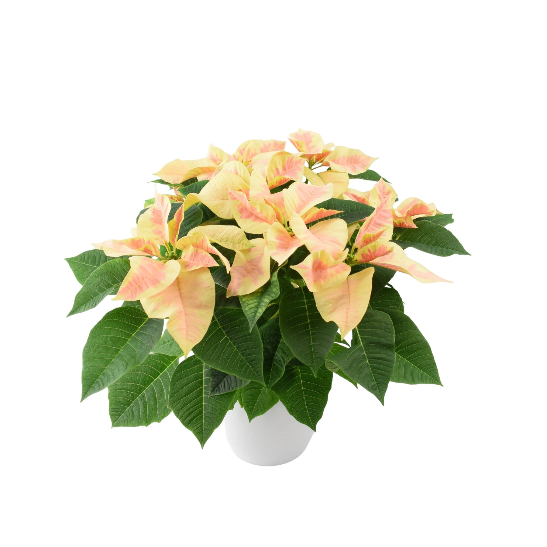 Bring the spirit of the season into your home with the Poinsettia Marble in a sleek 13cm white ceramic pot. With its striking marbled bracts in shades of soft cream and pink, this British-grown poinsettia is an elegant and festive choice for decorating your home or gifting during the holiday season. Its vibrant colours brighten up interiors and create a warm, welcoming feel.