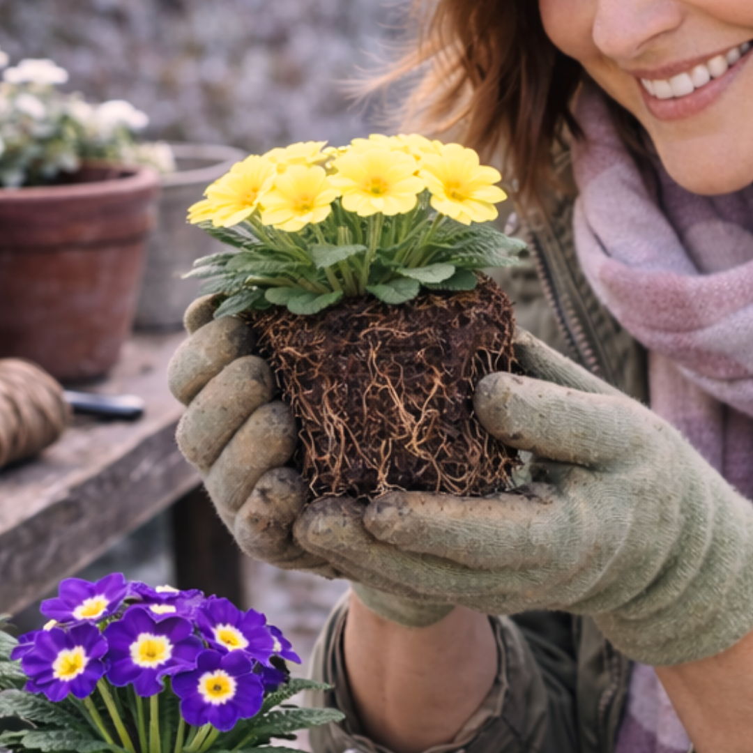Primroses are a timeless garden favourite, bringing bold, cheerful colour to beds, borders, pots, and baskets during the cooler months when many plants are still dormant. The 'Cream' variety offers an elegant, soft glow that keeps your garden looking vibrant through autumn and winter. Each plant produces clusters of delicate, velvety blooms set against a neat rosette of lush green foliage.