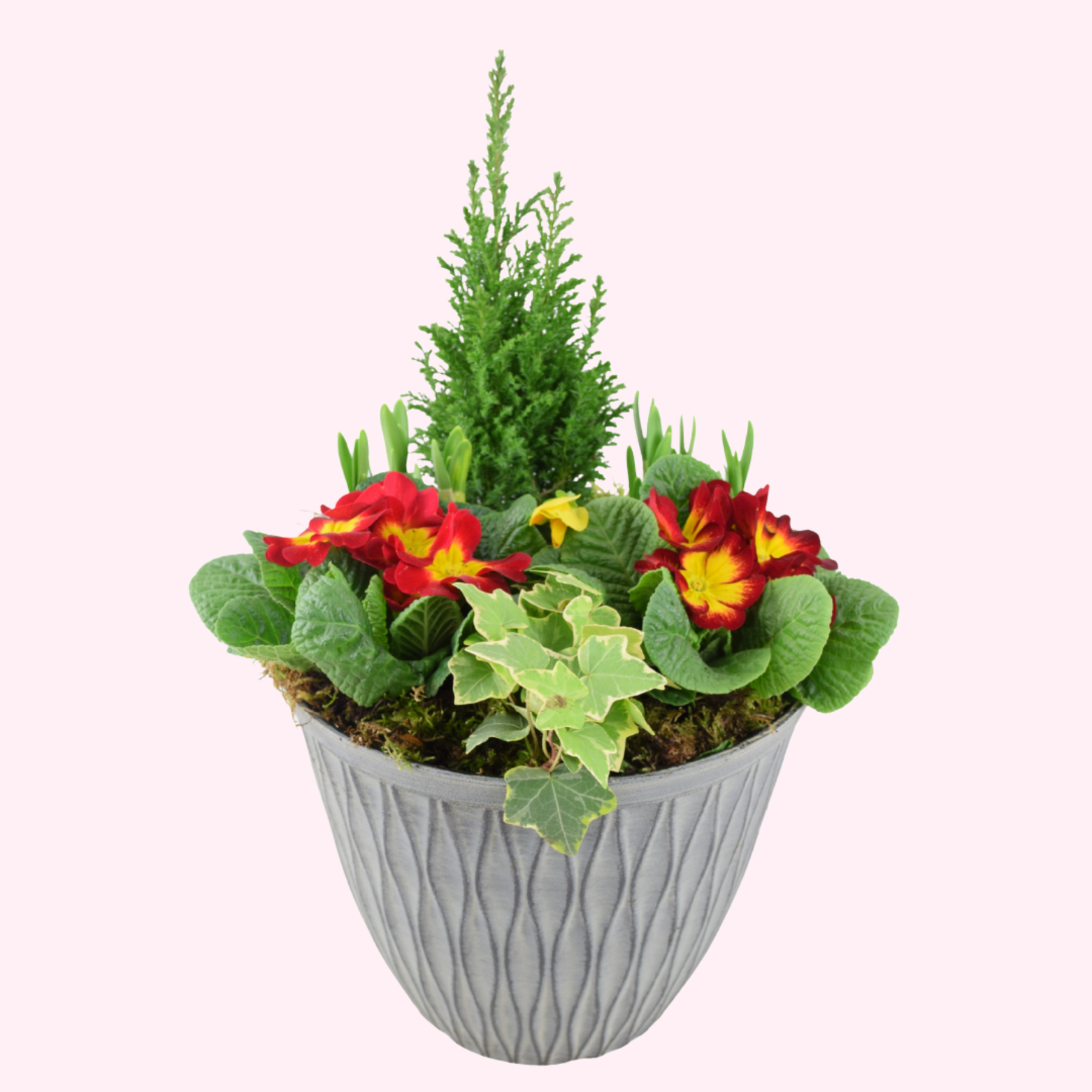 Bring effortless charm to your outdoor spaces with these beautifully arranged, ready-to-display seasonal planters. Ideal for gifting or enhancing your garden with vibrant, lasting colour.