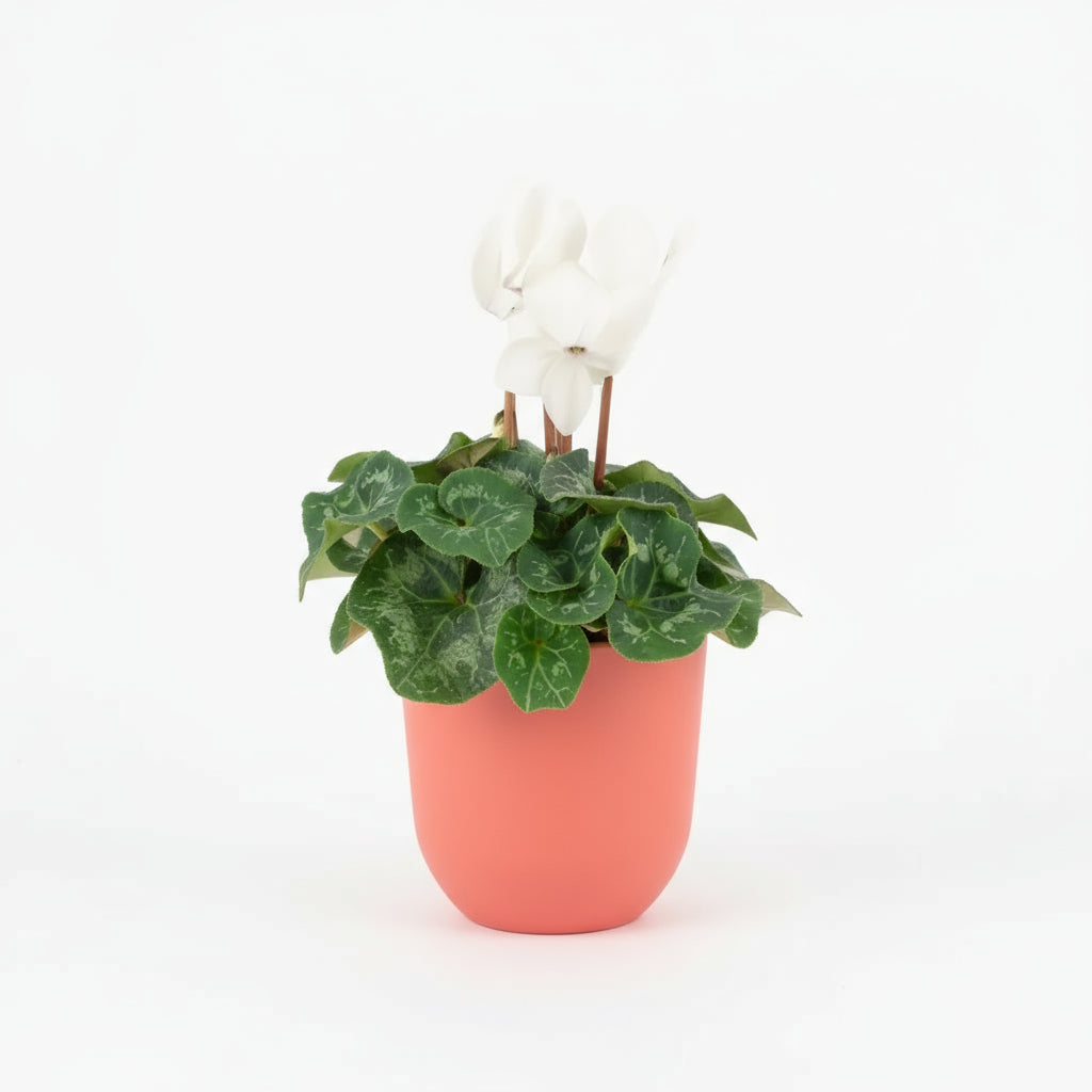 A charming and easy indoor favourite, this White Cyclamen brings a soft, serene touch of nature into your home, lifting any space with its gentle winter blooms.