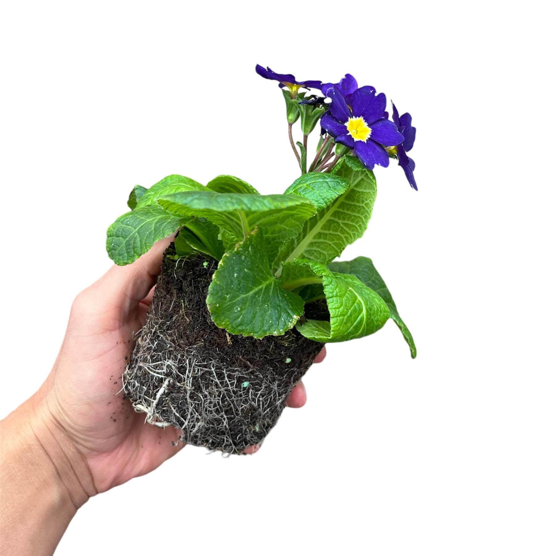 A timeless winter favourite, Polyanthus Blue features clusters of rich, deep-blue flowers, each highlighted by a striking sunny yellow centre. These vivid blossoms sit proudly above neat rosettes of textured, lush green leaves, creating an elegant and cheering display. Perfectly suited for brightening up garden borders, patio pots, and window boxes, these hardy plants provide much-needed colour from late autumn all the way through to spring.