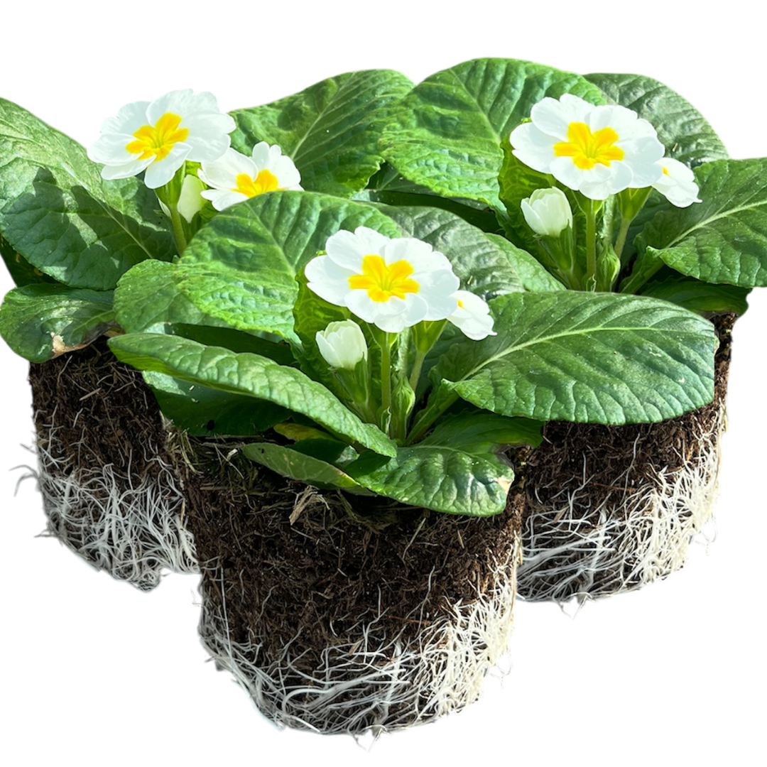 3 x Primrose ‘White’ plants in 10.5cm pots, well-rooted and garden-ready