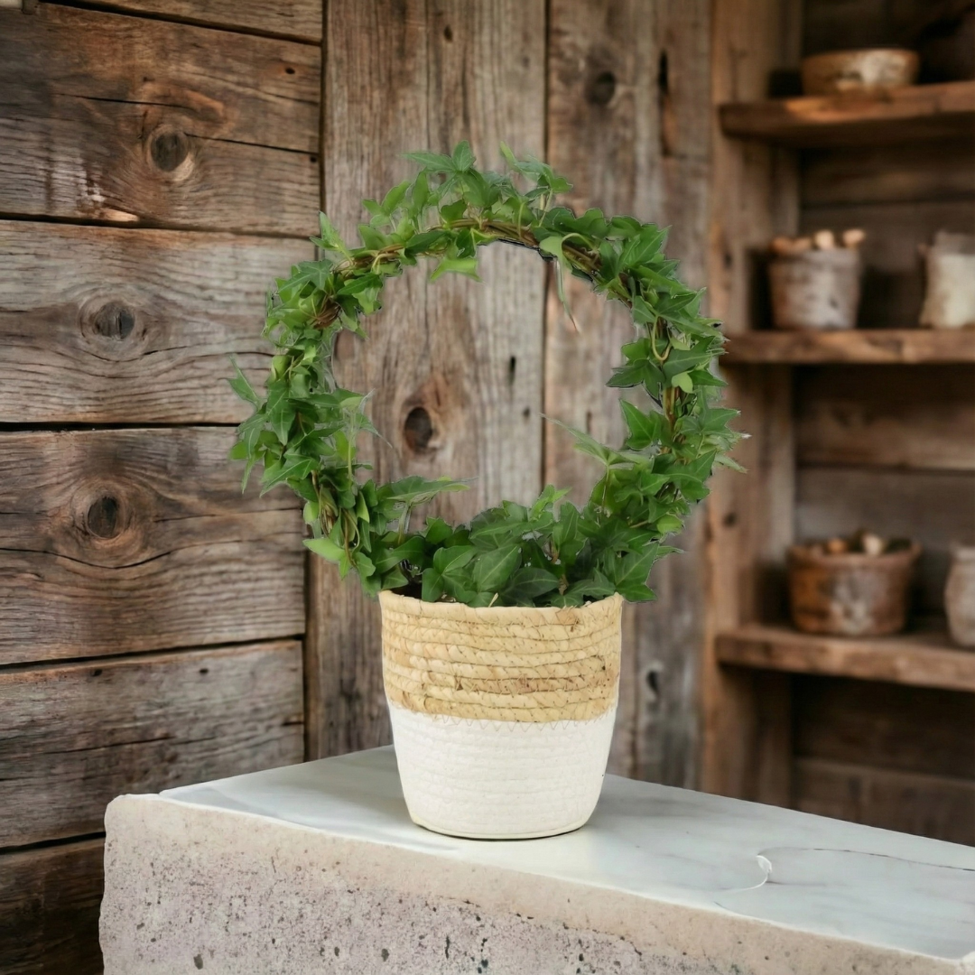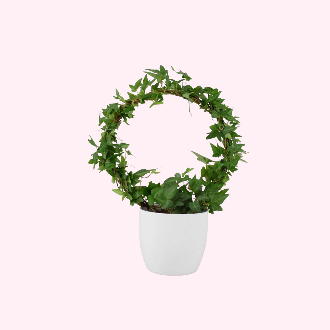 Introduce a touch of timeless botanical charm to your home with our Hedera Ivy Hoop. This classic English Ivy has been expertly trained into an elegant hoop, creating a sophisticated and structured display of lush, evergreen foliage. Its compact, architectural form makes it an exquisite addition to a desk, bookshelf, or windowsill, bringing the tranquility of the outdoors into your interior sanctuary.