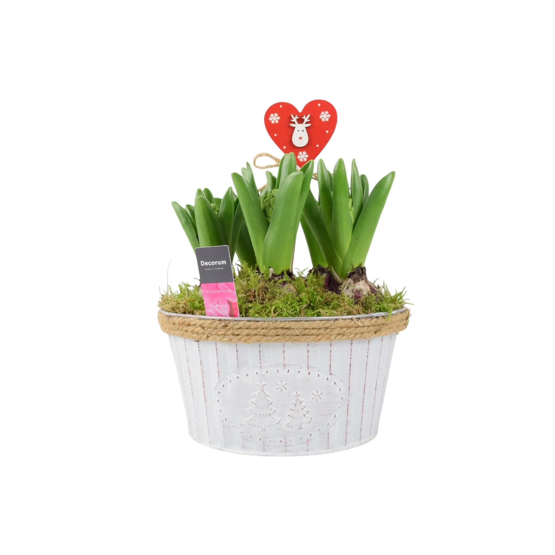 Bring festive fragrance and vibrant colour to your home or garden with the beautiful Christmas Hyacinth Bowl. This charming metal bowl arrives freshly planted with five premium Hyacinth bulbs, ready to burst into sweetly scented blooms. A true winter delight, these bulbs promise a rich display of colour and fragrance, making them a perfect addition to your festive décor or a thoughtful seasonal gift.