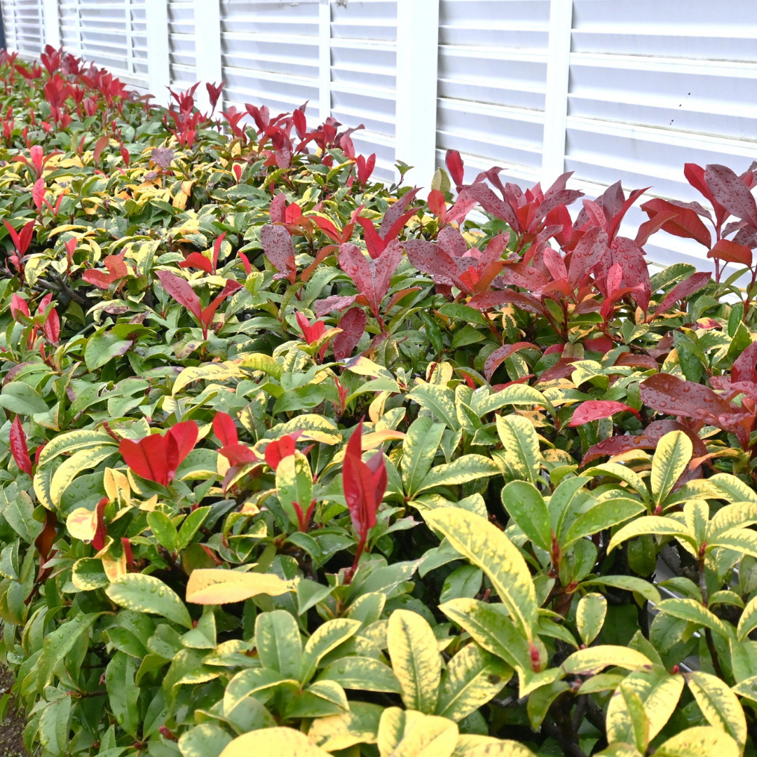 A stunning evergreen shrub famous for its brilliant red spring foliage and versatile hedging performance.